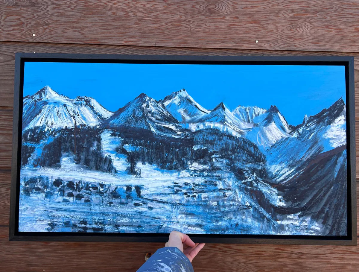 ‘Early Morning Wake Up Call’ Les Arcs———-> La Plagne on the The Vanoise Express. 88 x 49cm