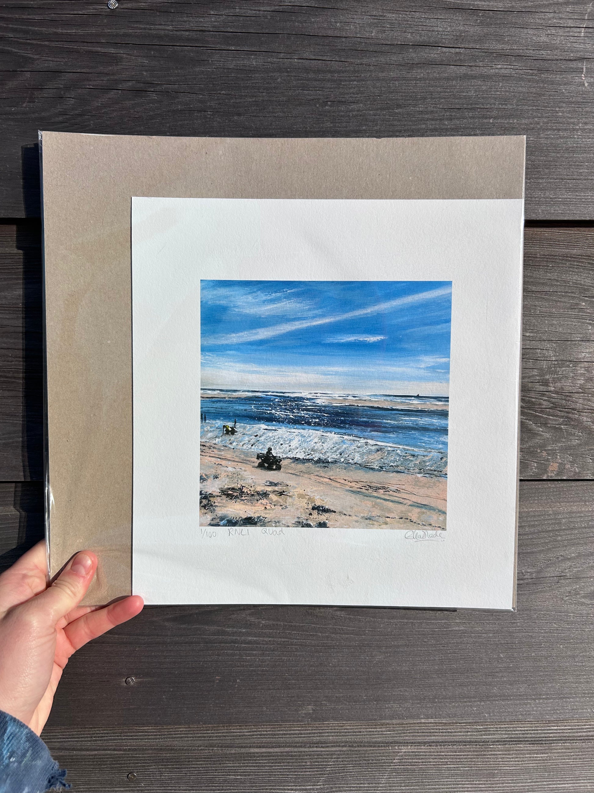 Limited edition of 100 reproduction of the original Ella Slade painting RNLI Quad 2024. Acrylic and acrylic ink.